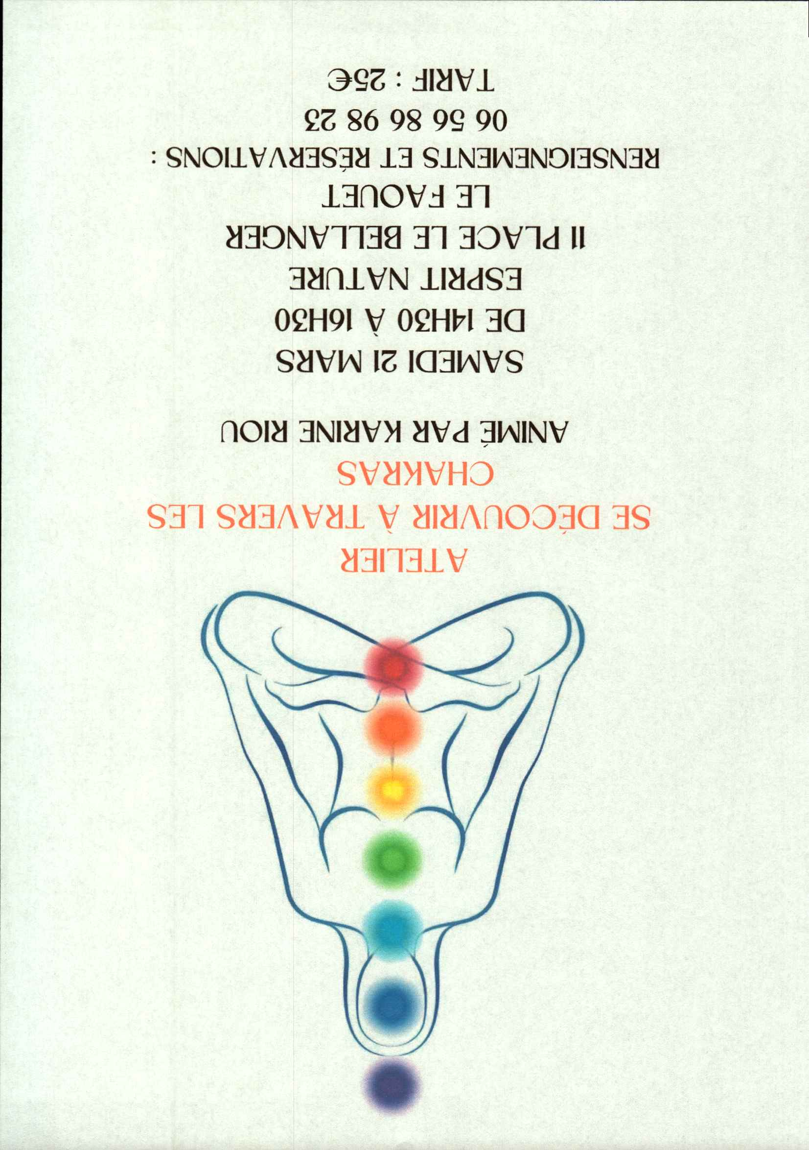 Libérez l’énergie qui est en vous! Principaux centres d’énergie du corps, les chakras contribuent à préserver notre santé et notre équilibre. A travers cet atelier, venez trouver les clés pour trouver cette stabilité.