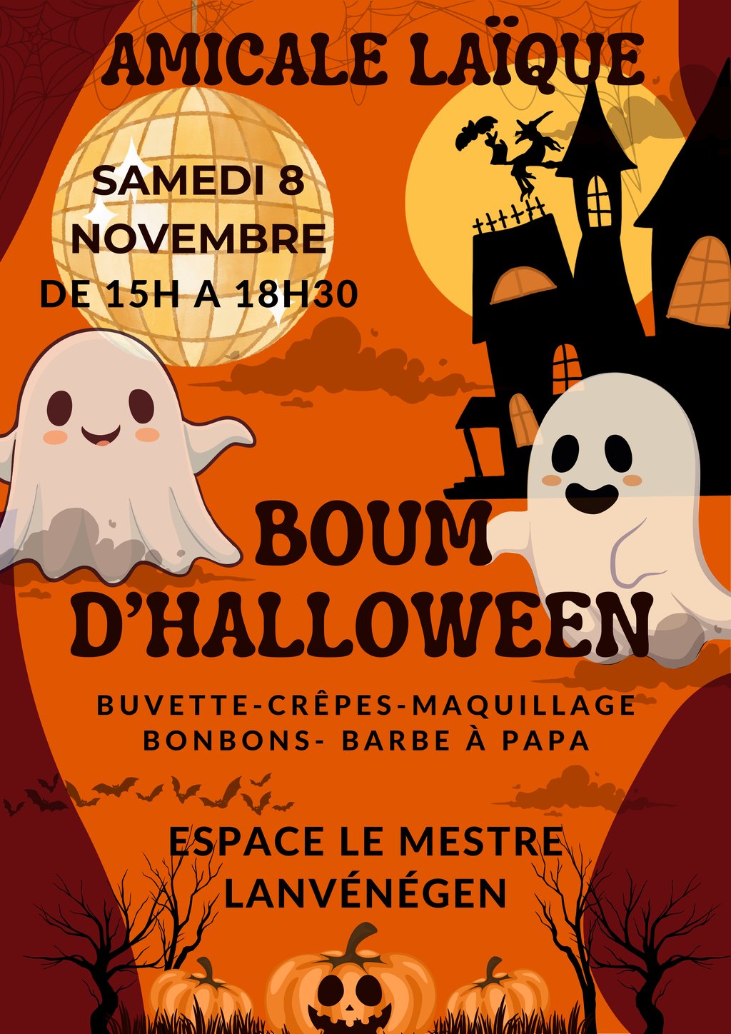 Organisée par l’amicale laïque de l’école publique Ar Milad. Les meilleurs déguisements seront récompensés par un prix gourmand par tirage au sort. Buvette, crêpes, maquillage, bonbons… Ouvert à tous.
