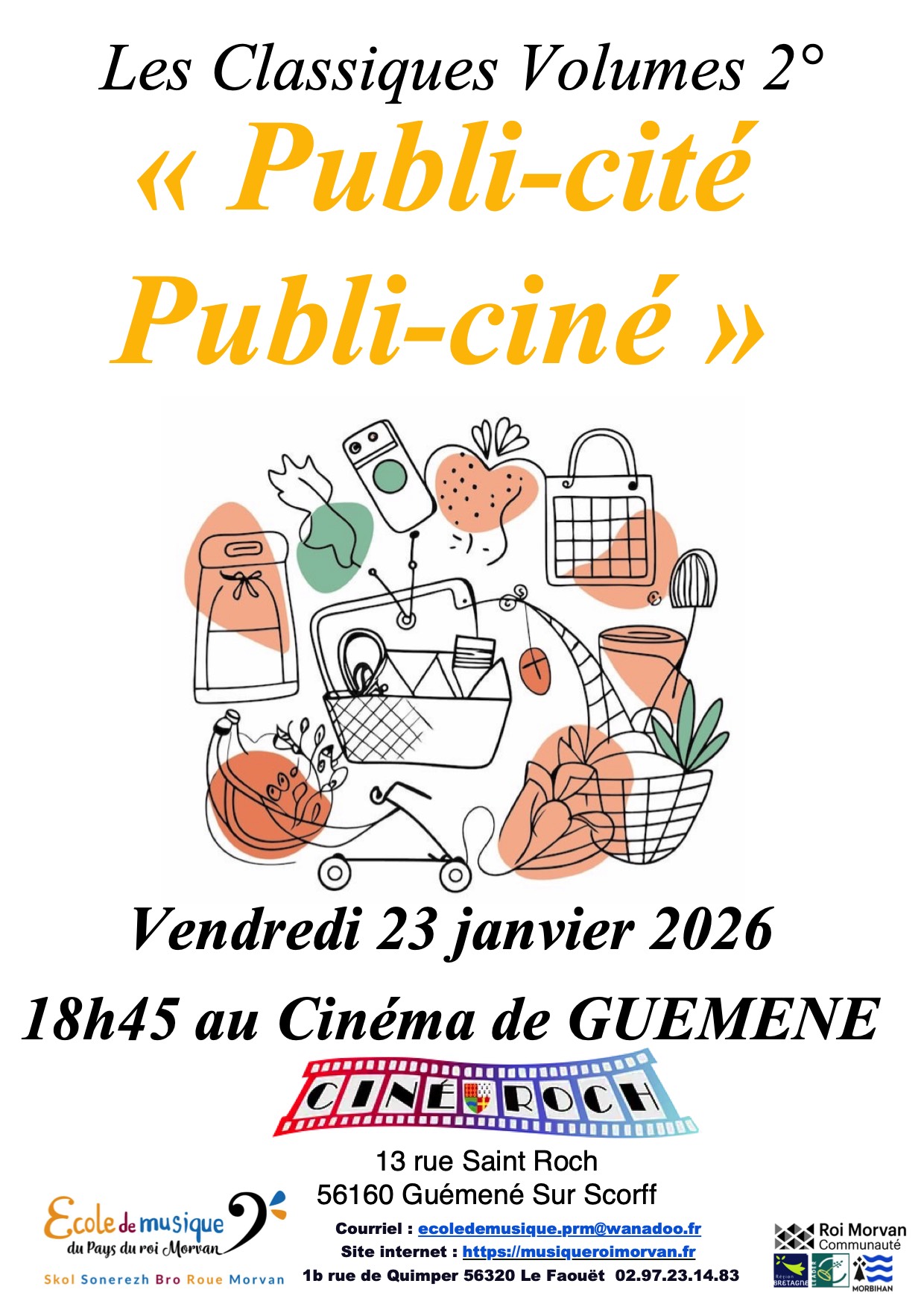 Le département de Musique Classique de l’école de musique vous donne rendez-vous sur le thème de la Musique classique dans la publicité, au Ciné Roch à Guémené Sur Scorff.