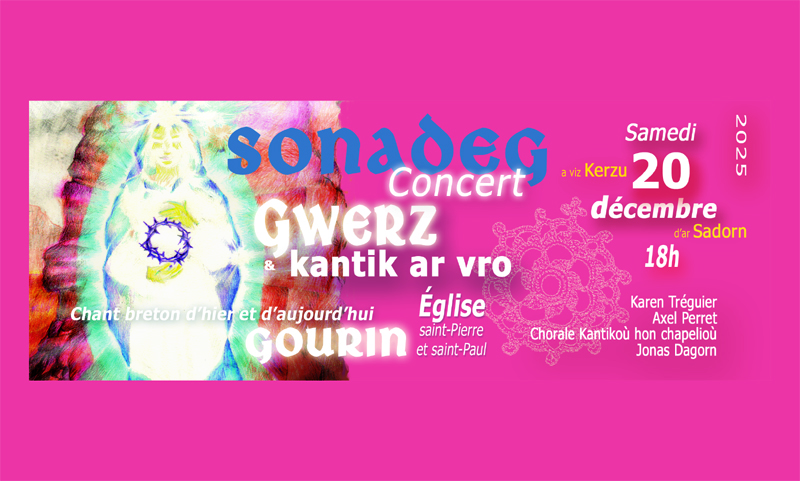 Concert de Noël inédit qui tisse un lien entre chants contemporains et anciens de Bretagne et des cantiques du pays de Gourin. Au programme : complaintes d’aujourd’hui avec des airs traditionnels de Bretagne sur des faits prodigieux en français, gwerzioù traditionnelles et chants populaires anciens en breton, cantiques polyphoniques en breton collectés dans le canton de Gourin. Au chant : Karen Tréguier, Axel Perret, la chorale Kantikoù hon chapelioù de Gourin, textes contemporains du poète Jonas Dagorn (1968-2024).