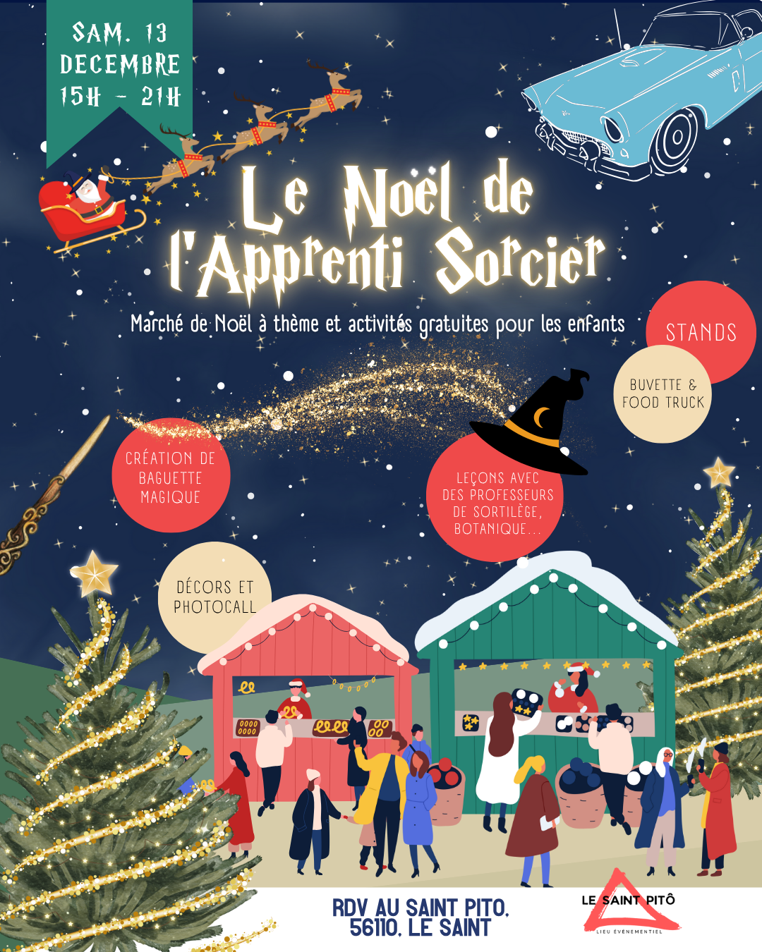 Le Saint Pitô donne rendez-vous aux familles et aux amateurs de féerie, à l’occasion du marché de Noël « L’Apprenti Sorcier ». Cette nouvelle édition proposera un village de Noël, réunissant des créateurs locaux, un foodtruck, une buvette et un ensemble d’animations pensées pour petits et grands, le tout dans un décor magique ! Tout au long de l’après-midi, les jeunes visiteurs pourront participer à plusieurs activités autour de la magie : création de baguettes magiques, atelier de plantes enchantées, allumage des bougies magiques du sapin, décor immersif et photocall. Ces ateliers ludiques et accessibles feront plonger les enfants dans un univers enchanté spécialement imaginé pour l’événement. La journée se clôturera par la projection du film “ Les Animaux Fantastiques : Les Secrets de Dumbledore ”, un moment convivial et festif. Entre découvertes artisanales, atmosphère chaleureuse et animations originales, ce marché de Noël s’annonce comme un rendez-vous convivial à ne pas manquer pour patienter jusqu’aux fêtes.