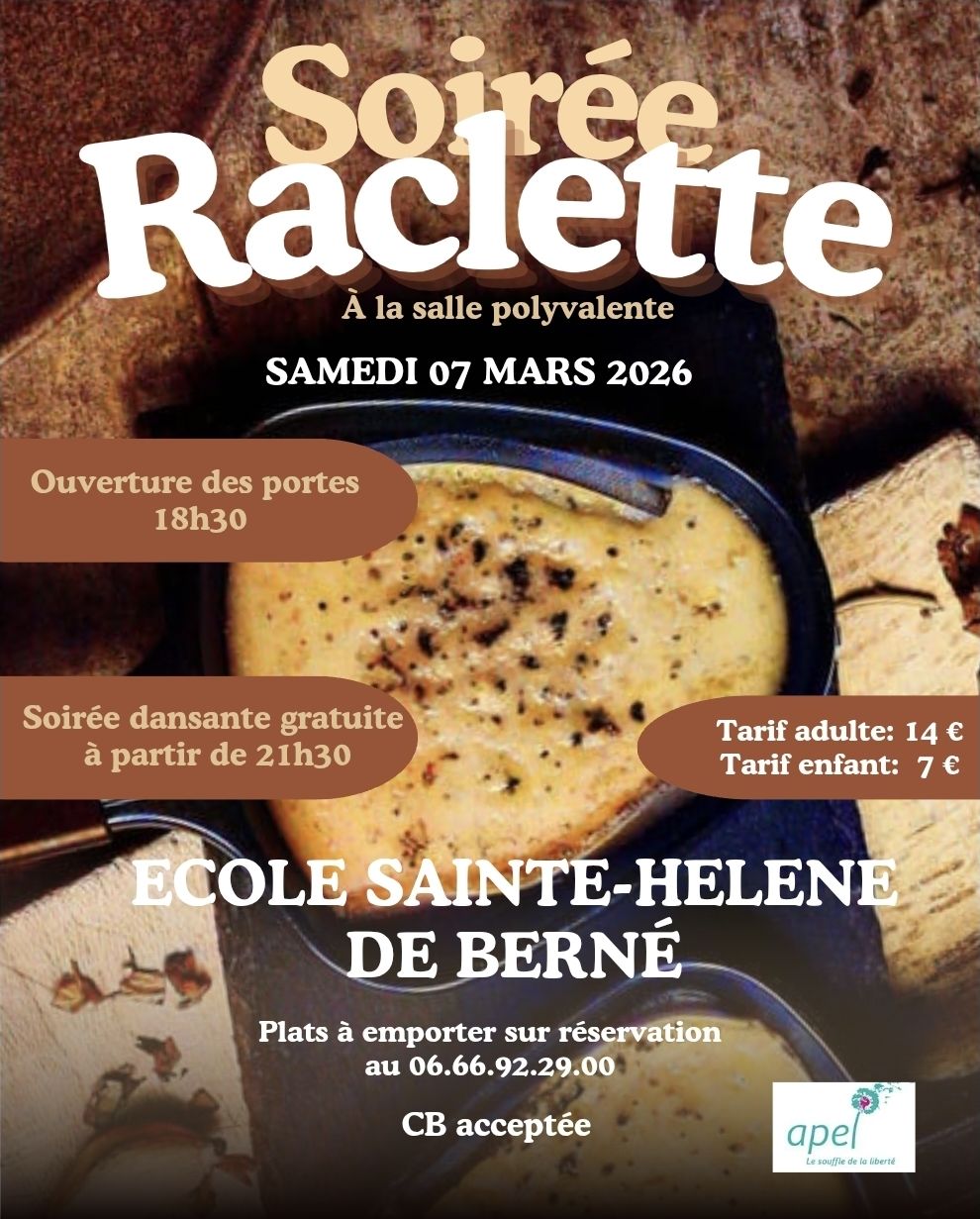 L’association des parents d’élèves de l’école Sainte-Hélène organise sa soirée raclette et dansante.