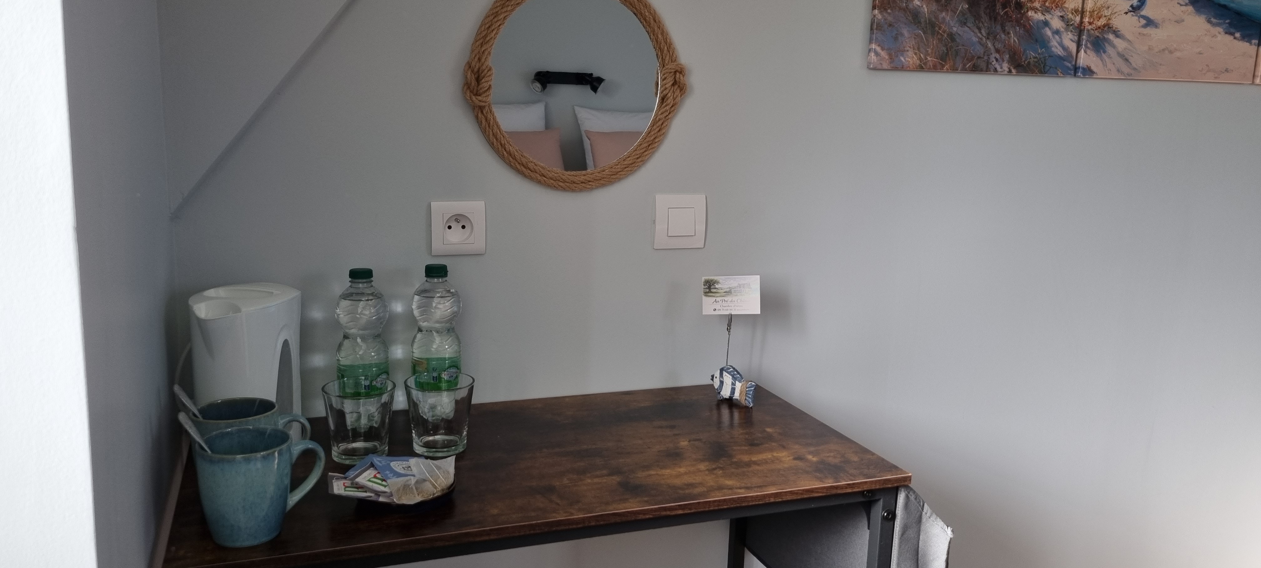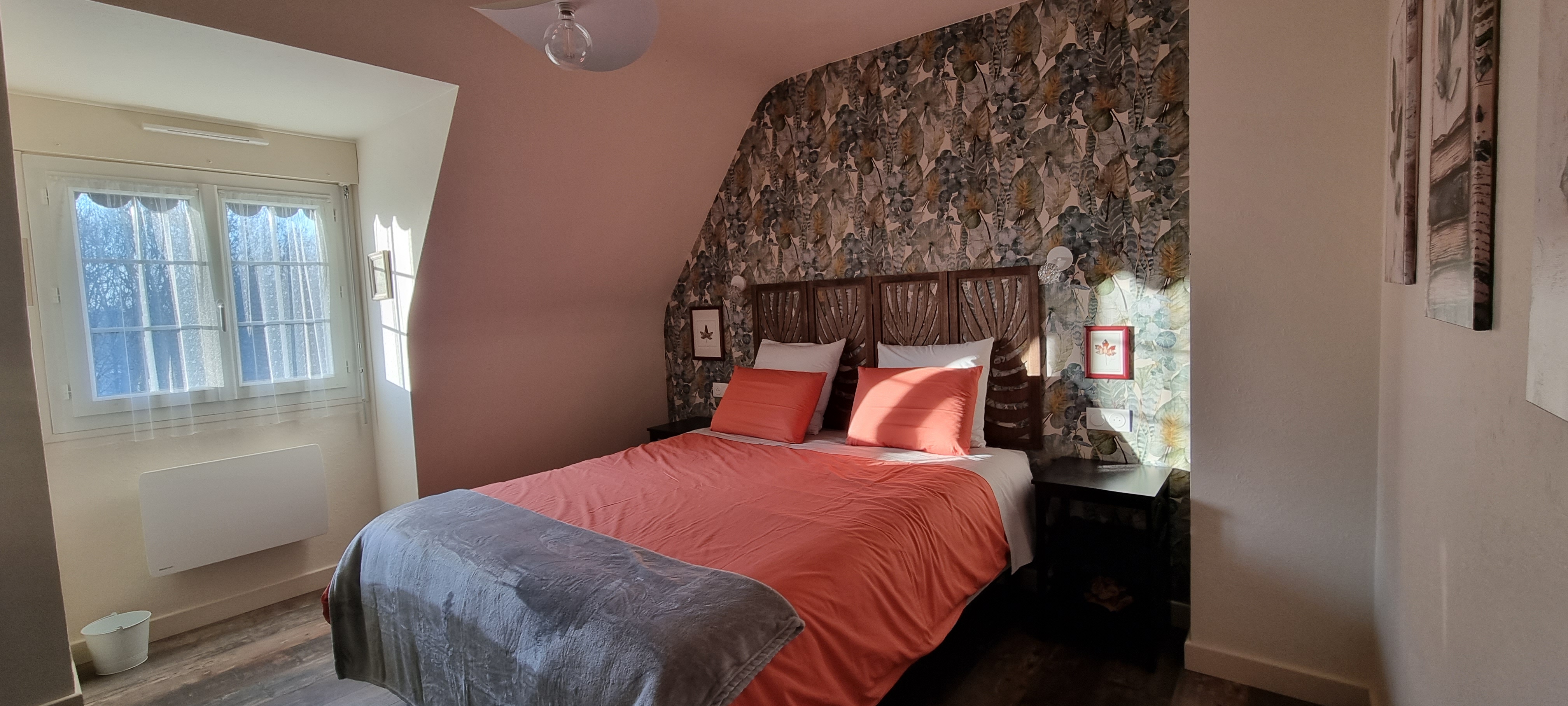 Les trois chambres situées à l’étage de notre maison sont décorées avec le plus grand soin et offrent une ambiance douce et naturelle. Chacune d’elles offre un espace confortable et reposant. La salle de bain et les WC, séparés, sont partagés et accessibles facilement depuis les chambres, dans un esprit à la fois convivial et respectueux de l’intimité de chacun.