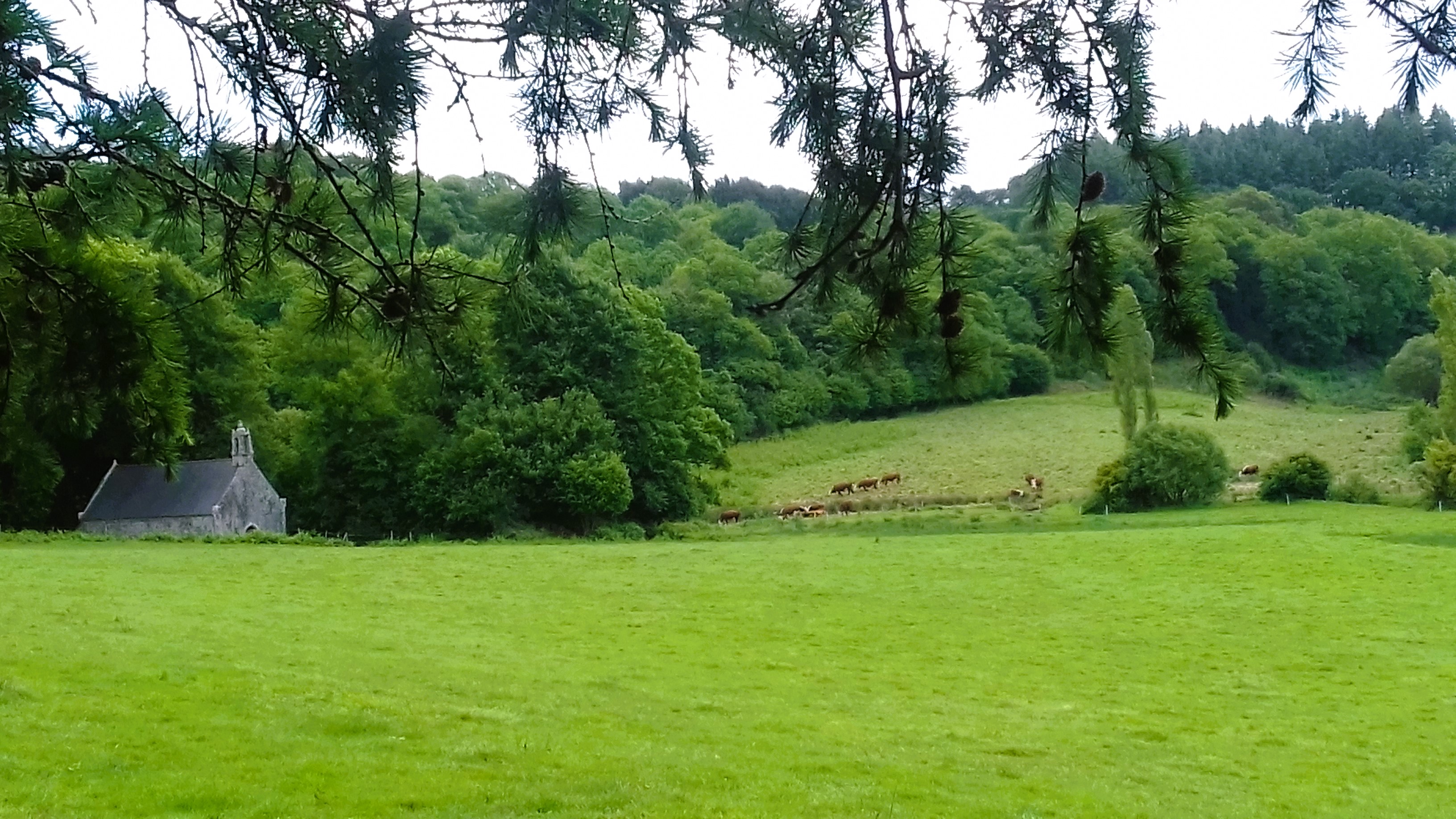 Aller-retour à la chapelle (XVIe) et sa fontaine (1615). Saint-Méen est invoquée pour la guérison des maladies telle que la gale.