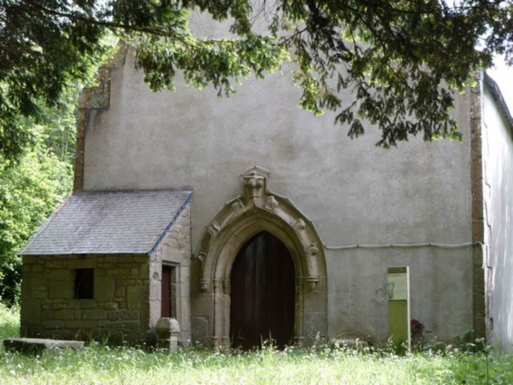 Cette chapelle faisait partie du Prieuré de Pont-Priant, fondé en 1108 par un vicomte du Poher (région de Carhaix). Le prieuré fut donné vers 1129 à l’abbaye Sainte-Croix de Quimperlé par Tanguy I, vicomte de Gourin. Elle était alors un asile pour les pèlerins et les malades. Au XVIIIème siècle, la chapelle servait de succursale à la trêve du Saint : on y célébrait baptêmes, mariages et sépultures. Elle devint après la révolution une simple chapelle de frairie. Elle fut reconstruite au XVIIIème siècle avec des vestiges d’une ancienne chapelle du XVIème (le clocher et la porte occidentale). Les murs furent restaurés en 1883 et la toiture en 1923, dont elle est à nouveau privée en 1979. On peut remarquer, à droite du retable, un groupe du XVIIème représentant Saint Gilles caressant une biche et à gauche, une Vierge à l’Enfant des Grâces, de la fin du XVIIème siècle. On invoque Saint Gilles contre les rhumatismes et douleurs articulaires. A l’ouest, se dresse une croix moderne en granite.