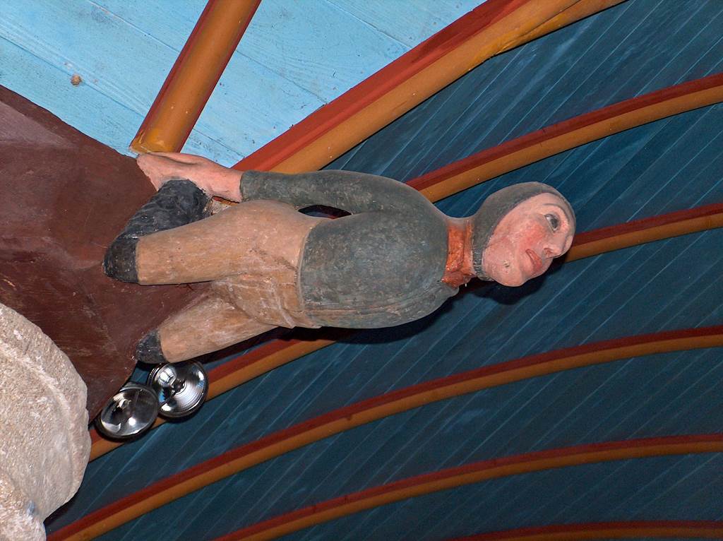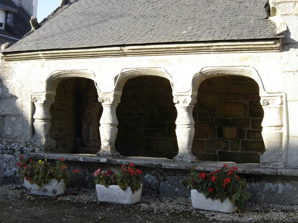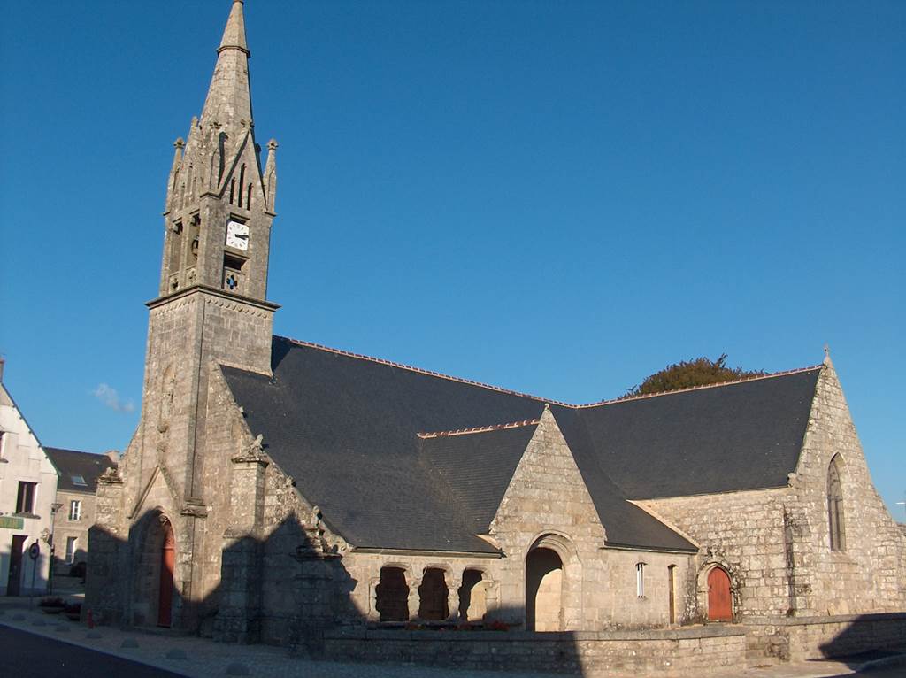 Dès le XIIème siècle, Le Croisty (Maison de la Croix) appartenait à l’ordre des Hospitaliers de Saint-Jean de Jérusalem. C’est de là que provient le nom de la commune. L’église du Croisty est dédiée à Saint Jean-Baptiste, Saint Patron des Hospitaliers. On trouve encore une statue de ce saint sous le porche de l’église où le Commandeur des Hospitaliers rendait justice. D’inspiration gothique, l’église fut achevée au XVIème siècle, cependant, les voûtes romanes évoquent un édifice plus ancien et probablement l’utilisation de certains éléments romans. Le bâtiment connaîtra des restaurations partielles au cours du temps : toiture, lambris, flèche du clocher… Au XIXème siècle, des réparations sauvent l’édifice de la ruine. Au début du XXème siècle, l’église est très endommagée au point d’être comparée à l’étable de Bethléem. On envisage même sa fermeture. A l’extérieur, l’ossuaire, largement ouvert sur le porche, date du XVIème siècle. Les trois arcades en anse de panier qui ferment sa baie reposent sur de jolies colonnes moulurées. En entrant dans l’église, on voit immédiatement la voûte bleue, symbole du ciel dans l’art roman. Les sablières en bois polychrome affichent des scènes de chasse (plaisir aristocratique souvent sculpté du XVème au XVIIème siècle), des scènes de vie courante (que penser de l’étonnante représentation, au sein d’une église, de ce personnage s’apprêtant à uriner !) et d’autres curiosités tel le combat des centaures («femme» armée d’un arc décochant une flèche à un « homme » se protégeant d’un bouclier) ; le centaure illustre la bestialité de l’homme dans la symbolique chrétienne. Les chiens sont souvent représentés, en meute ou errant seuls, au Croisty. Un vitrail du XVIème siècle, placé au chevet de l’église, retrace la vie de Saint Jean-Baptiste : annonce de la venue du Messie, baptême du Christ, décapitation et présentation sur un plat de la tête du Saint à Salomé qui l’apporte ensuite à sa mère Hérodiade… On note également une riche statuaire.