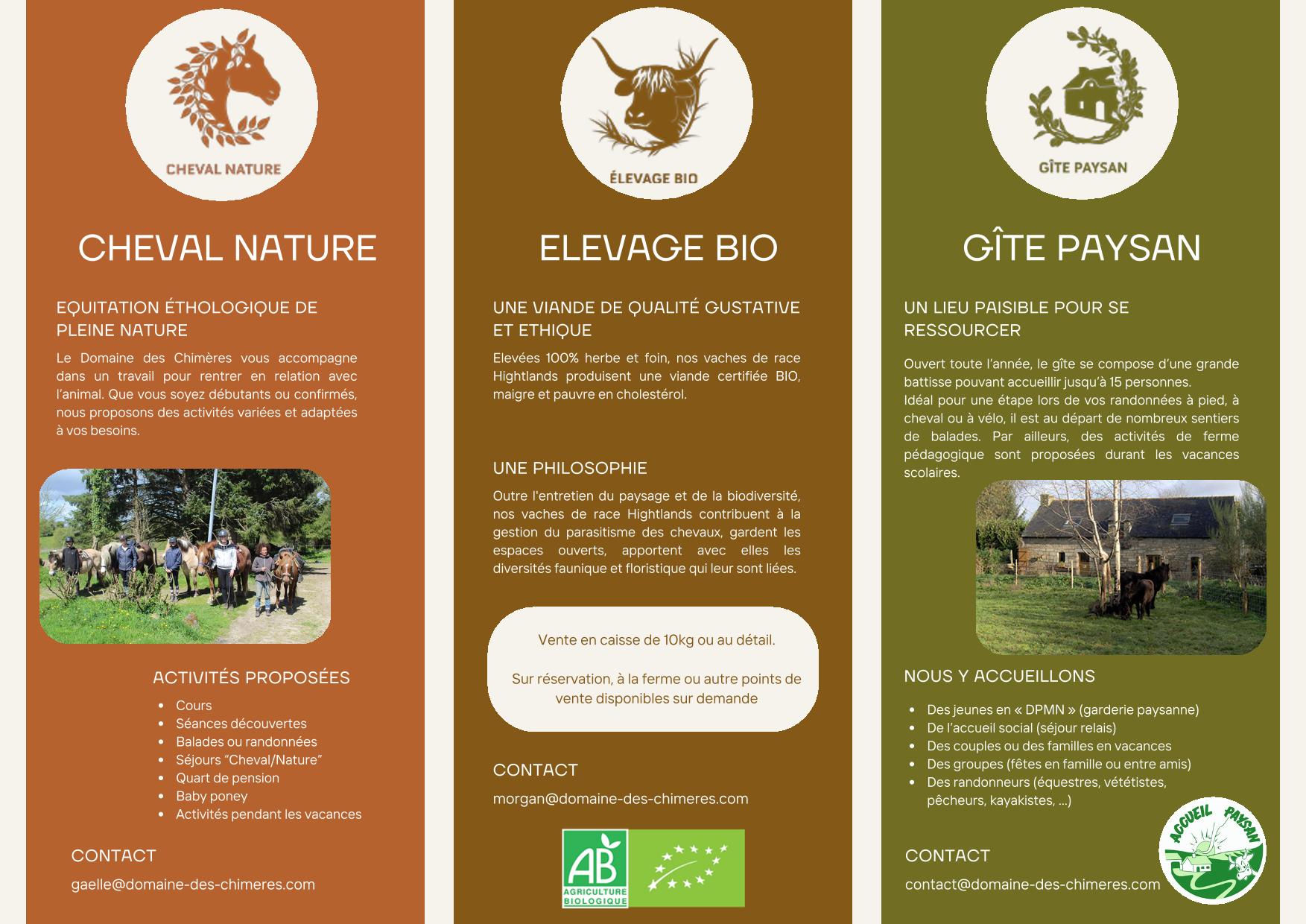 Rencontre avec le cheval et le poney au sein d’une ferme bio, dans une ambiance familiale. A la ferme équestre de l’association des chimères, notre approche de l’équitation privilégie la confiance et la complicité. Nous sommes spécialisés dans l’équitation éthologique de pleine nature. A partir de 11 ans, nous proposons une initiation afin de découvrir cette approche et accéder ensuite à toutes nos activités. A partir de 6 ans, stages ludiques jeux, balades, attelage, voltige. Dès 2 ans, équimotricité ou balade. Séjour « cheval nature » à partir de 7 ans : 6 enfants en pension complète. Lors des vacances scolaires, l’association propose des formules d’accueil à la séance, demi-journée, journée ou sous forme de séjours de 5 jours, avec des activités adaptés aux âges des participants.