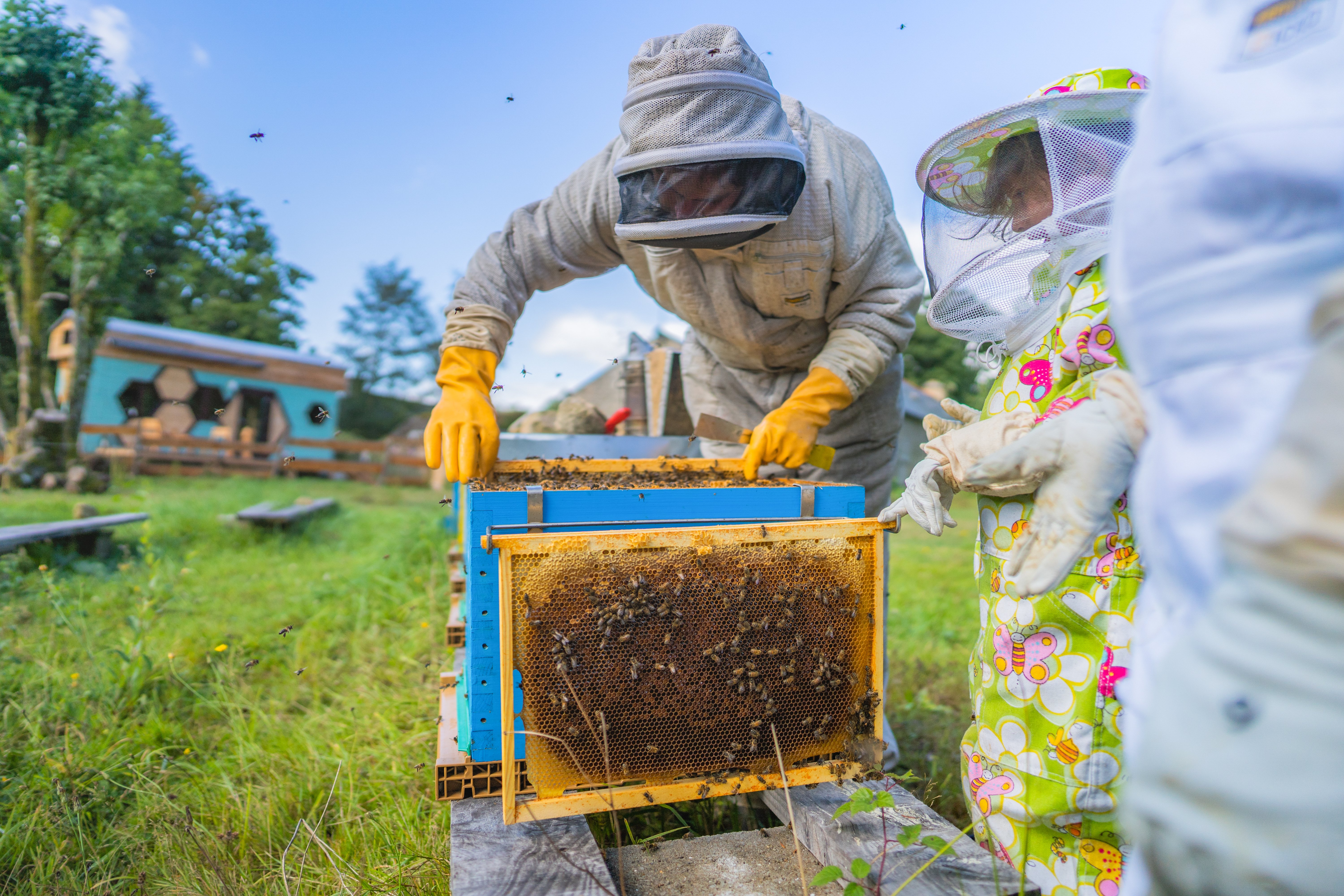 Créée en 2015, la Fontaine Airmeth est une ferme écologique familiale en agri-tourisme, de 5 ha, avec production de miel et produits de la ruche, en agriculture biologique. Claire et Thomas Le Glatin proposent des logements insolites dédiées aux abeilles, avec option baptême d’apiculture.