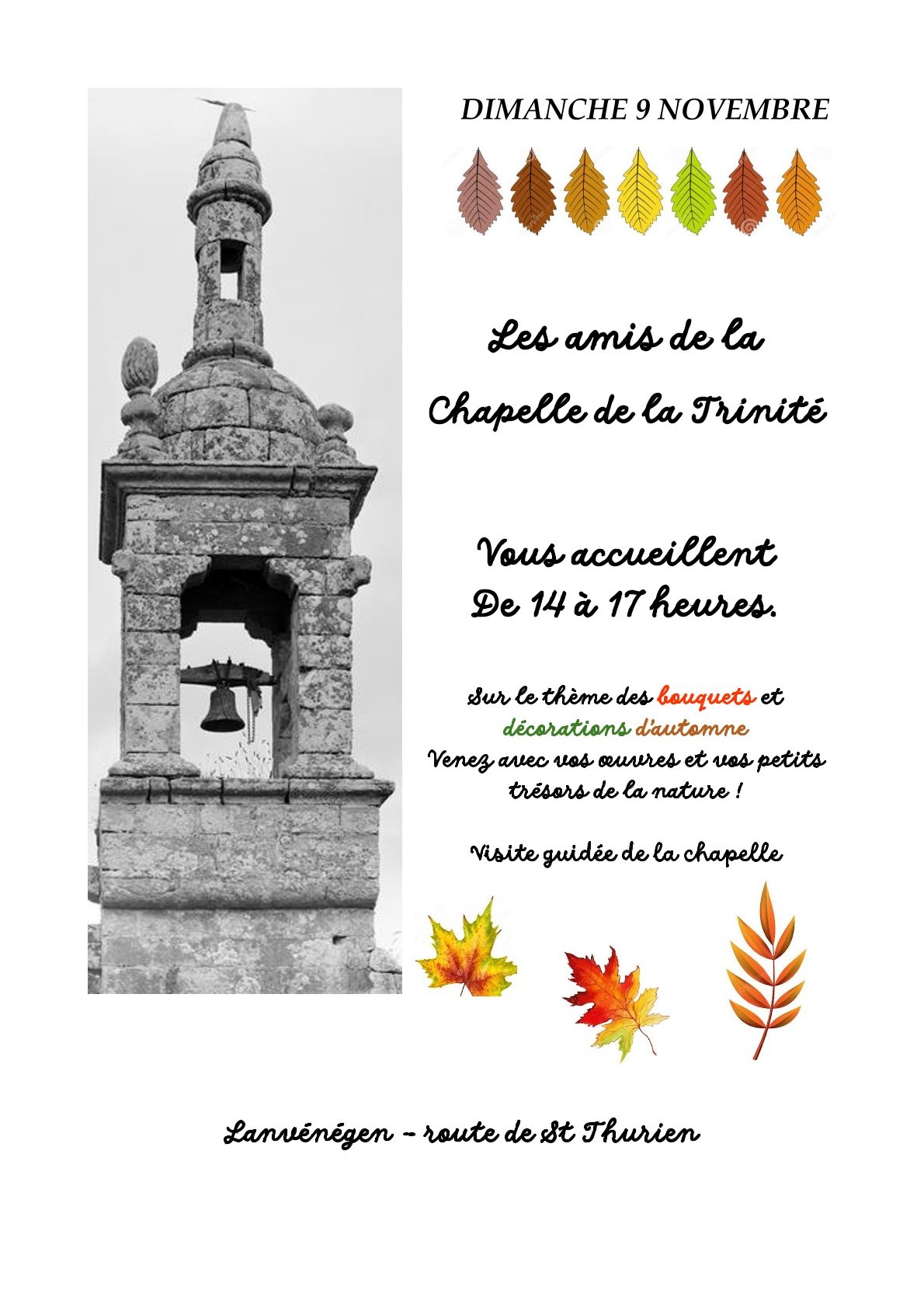 Animations sur le thème des bouquets et décorations d’automne. Apportez vos œuvres ! Visite guidée de la chapelle.