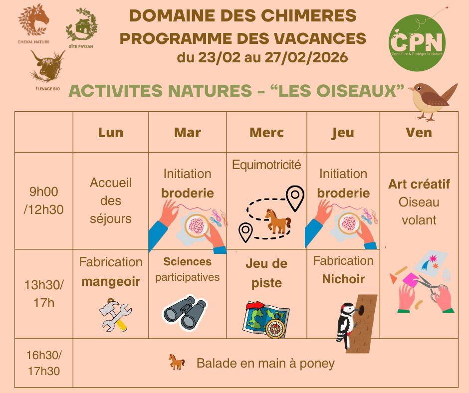 Les oiseaux seront à l’honneur ! Expo, ateliers, jeu de piste… Le Domaine a récemment rejoint le réseau des refuges LPO et club nature CPN. Et bien sûr des activités autour des poneys !