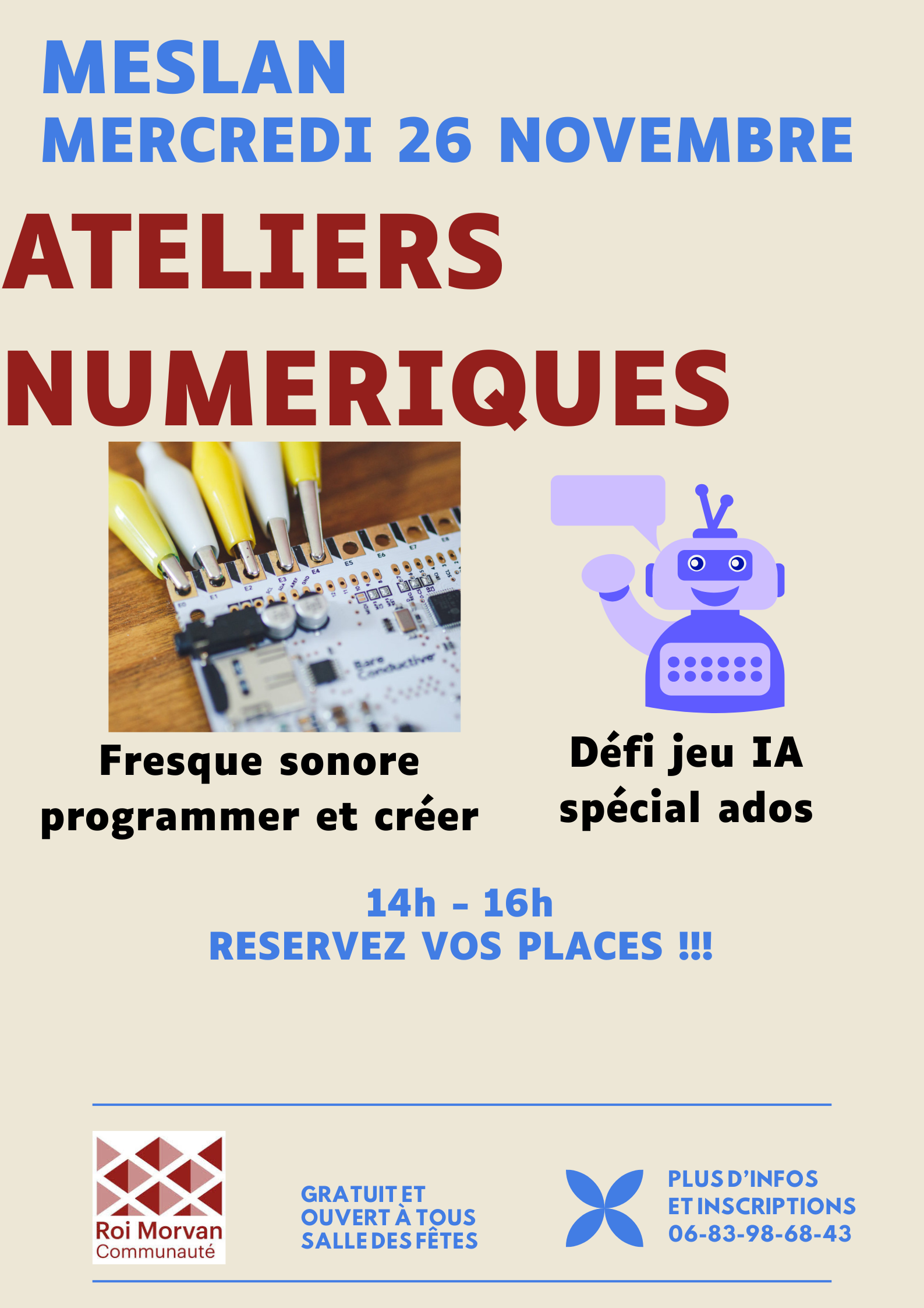 Animations ludiques et créations sonores ! L’association ElectroniK proposera un atelier pour apprendre à programmer la musique et l’association DEFIS une animation IA.