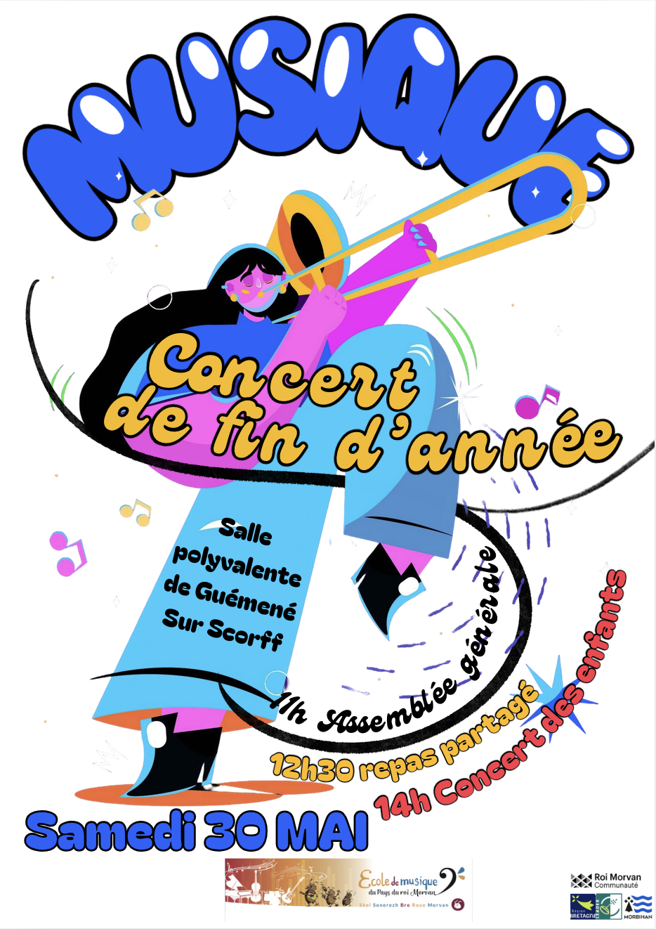 Dans le cadre du concert de fin d’année des enfants, en matinée, se déroulera la traditionnelle assemblée générale de notre école associative où tous les projets seront présentés. La réunion sera suivie d’un repas partagé musical et du concert des ateliers enfants de l’école de musique.
