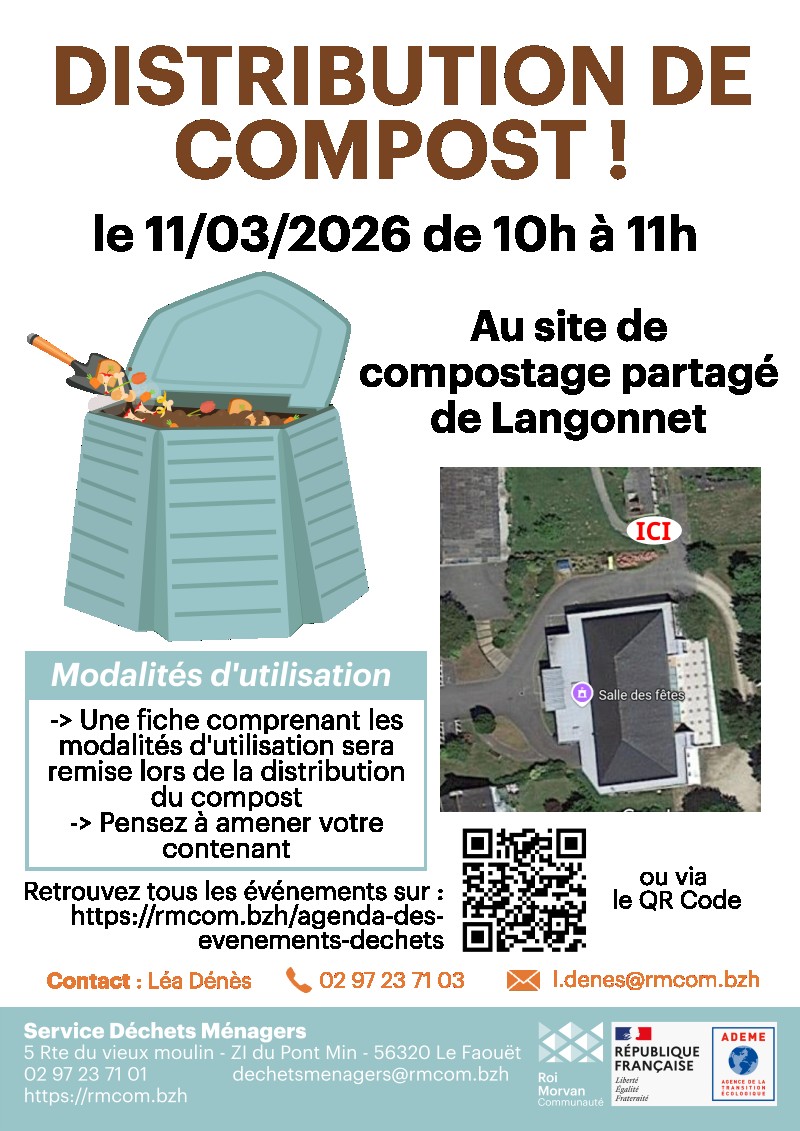 Distribution du compost produit sur le site de compostage partagé de Langonnet ! Apportez votre contenant pour récupérer du compost gratuitement. Un dépliant sur l’utilisation du compost sera fournit lors de la remise du compost.