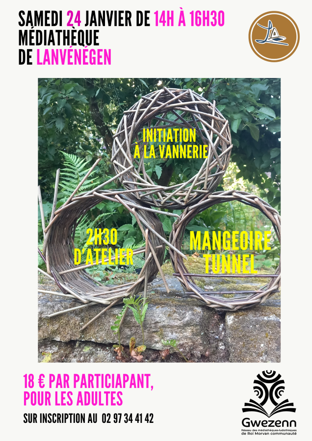 Réalisation d’un mangeoire tunnel en osier. Atelier pour adultes sur inscription, animé par Déborah Rué El de Débo Rêve créations. Outils et matière première fournis.