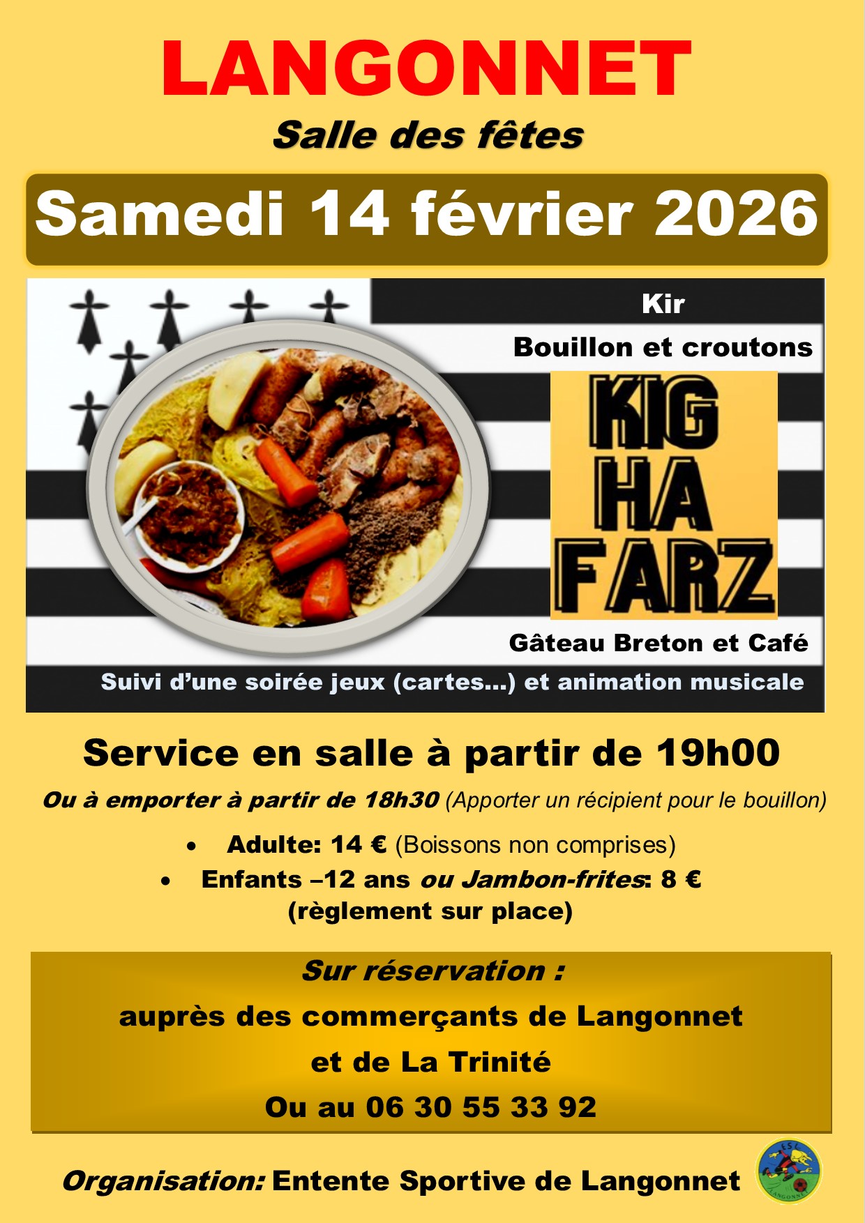 Le repas sera suivi d’une soirée jeux et d’une animation musicale. Sur place ou à emporter (apporter ses récipients).