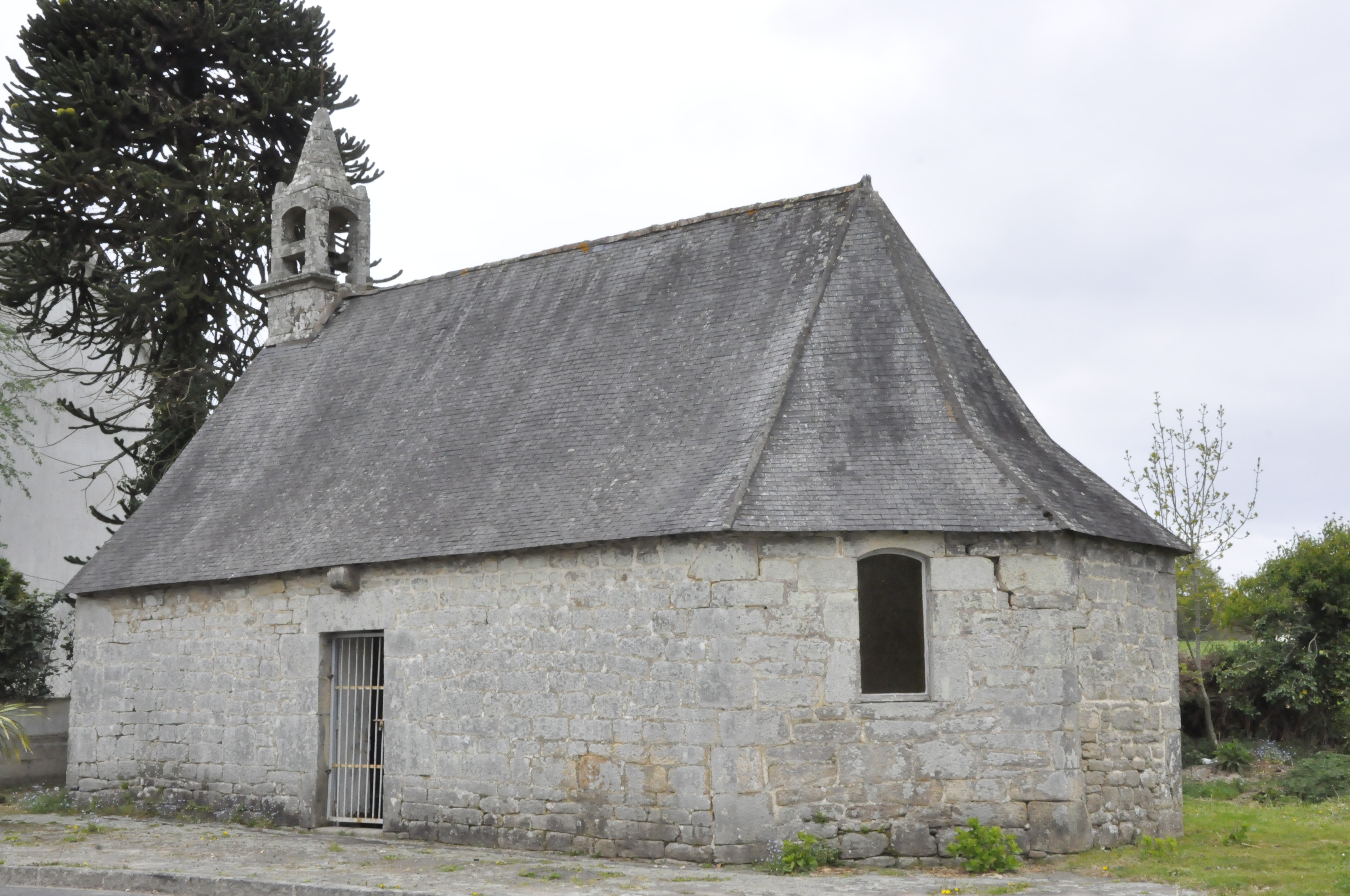 En 1774, s’achevait la construction de cette chapelle qui abritait une relique de la Vraie-Croix. Cet édifice, en appareil de granit, était rebâti pour la troisième fois. Il était auparavant dénommé chapelle de la Magdeleine. Cette dénomination indiquerait que la chapelle dépendait d’une léproserie entretenue par les Hospitaliers de Saint Jean. A l’origine, située de l’autre côté de la route, la chapelle risquait d’être inondée à cause des crues du ruisseau Le Chapelain. De forme rectangulaire, le bâtiment mesure 10 mètres de longueur pour une largeur intérieure de 4,50 mètres. Il se termine par un chevet à trois pans. Il s’ouvre à l’ouest par une porte en plein cintre. Des deux portes percées dans les longères, il ne reste que celle du midi, l’autre ayant été murée. Deux fenêtres agrémentant le chœur apportent de la lumière. Un écu martelé surmonte la porte occidentale. Le petit clocheton à souche carré possède une courte flèche polygonale.