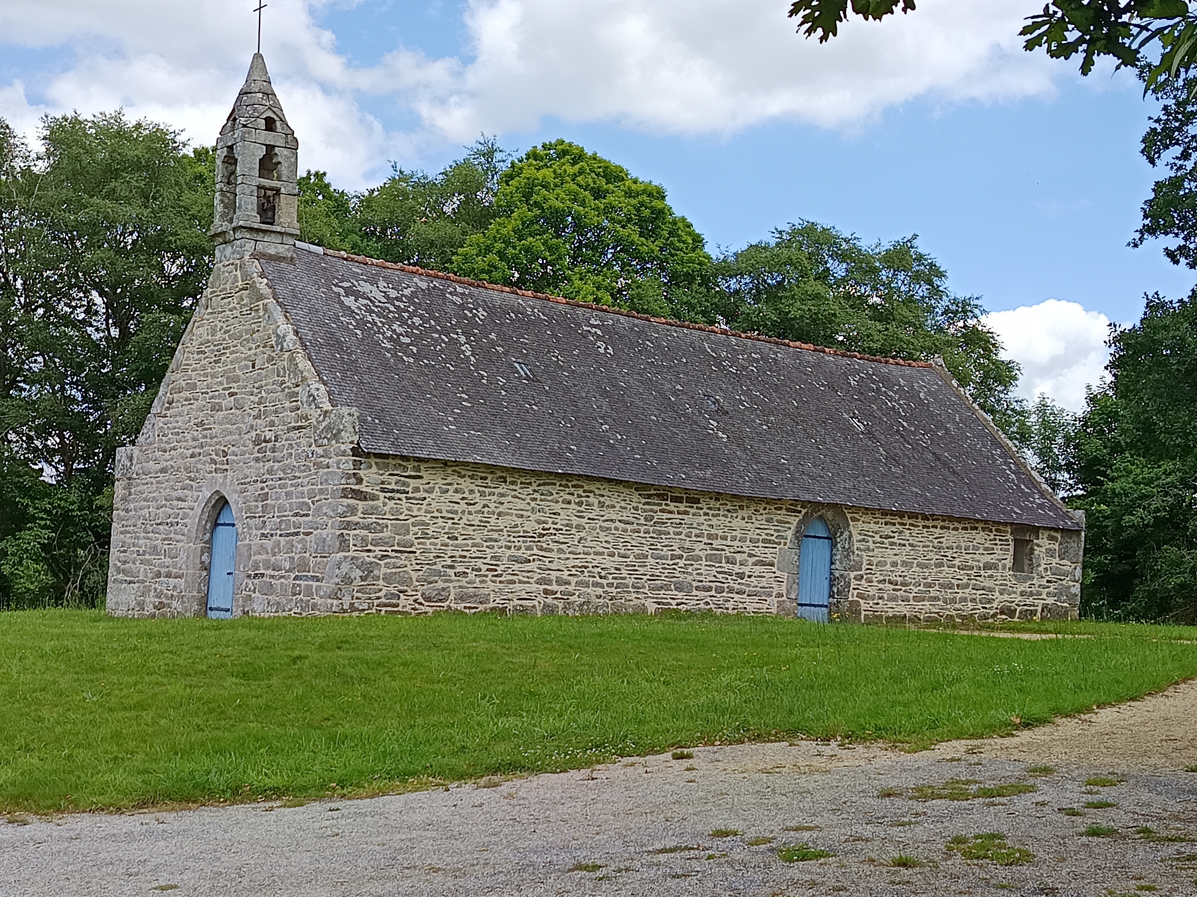 Dédiée à Saint Guénolé qui n’est autre que Gwennolé, le saint fondateur de Landévennec dans le Finistère, cette chapelle rappelle que la terre de Lanzent est un lieu de culte depuis le 6ème siècle (Lan-Sent signifiant le lieu consacré des saints). Un prieuré, possession confirmée au 9ème siècle de l’abbaye de Landévennec, y fut bâti. Une première chapelle succéda à l’oratoire des moines. Celle qui existe aujourd’hui a été reconstruite par le seigneur de Kerandraon en 1688 comme l’atteste la date sur le linteau de la fenêtre de la façade sud. Pour cette reconstruction, on utilisa des éléments de la chapelle antérieure : la fenêtre de chevet à réseau flamboyant et le clocheton carré. L’édifice est formé d’un vaisseau unique en berceau. Il a été restauré en 1969. Dans le chœur, la statue en pierre de Saint Guénolé en habits sacerdotaux et tenant une crosse dans la main gauche date du 16ème siècle. Autrefois, on attribuait à Saint Guénolé le pouvoir de faire blanchir et mûrir les moissons. Cette croyance s’expliquait par le jeu de mots « Gwen ol é » dont la traduction littérale en français est « blanc tout il est ».