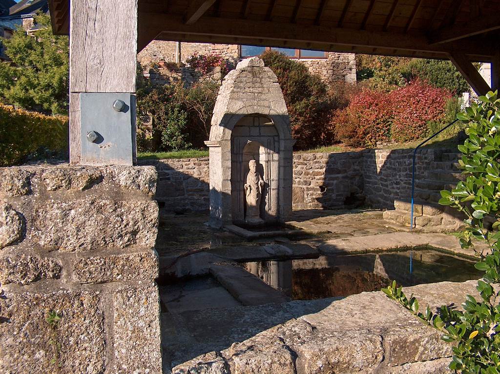 La croix dressée à côté de l’église avait pour fonction de protéger le cimetière. Elle est probablement contemporaine de l’édifice primitif du XVème siècle. La date de 1709, sur le socle, concerne l’adjonction d’une table d’autel. A la base de la croix, quatre frontons sont ornés de quatre personnages dont Saint Pierre, reconnaissable à ses clés, Saint Caradec et la Vierge.