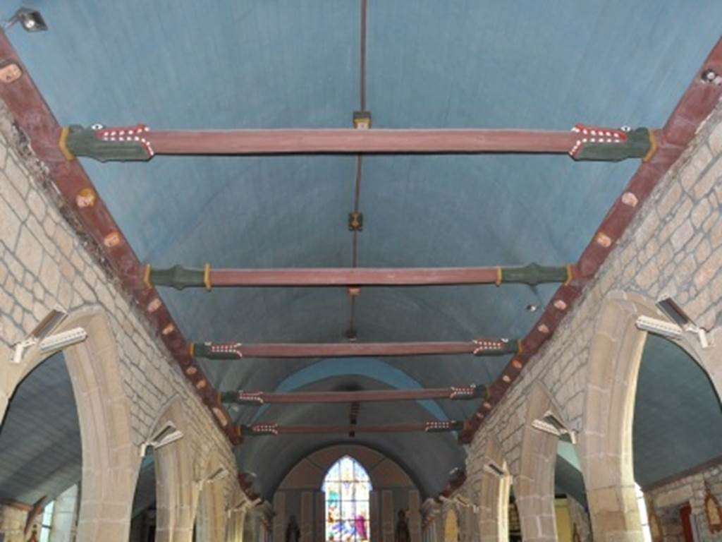 A l’intérieur, on trouve des sablières illustrant des scènes de chasse, thème souvent représenté dans les églises à l’époque. On y admire aussi un autre thème fréquemment traité : le Roman de Renart (une femme en colère menace d’un gourdin Renart qui vient de lui voler une truite fario, probablement pêchée dans une des rivières poissonneuses du pays du Roi Morvan !).