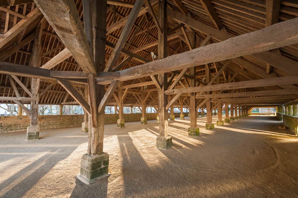 Elles datent du XVIe siècle (vraisemblablement 1542), sont inscrites aux Monuments historiques, ont été restaurées au XIXe siècle et appartenaient à leur création au seigneur du Faouët. Il s’y tenait un grand marché tous les mercredis, ainsi que neuf foires annuelles, puis quatorze à partir du XVIIe siècle. La charpente magnifique en sapin et en chêne est rehaussée d’un toit d’ardoises soutenu par une rangée de courtes colonnes de granit, portées par un muret de pierres. A noter aussi le clocher octogonal coiffé d’un bulbe à huit pans. Quand vous serez près des halles, place Bellanger, ne pas oublier de jeter un œil sur les maisons anciennes alentour, notamment celle qui se situe au n° 11 de la place.